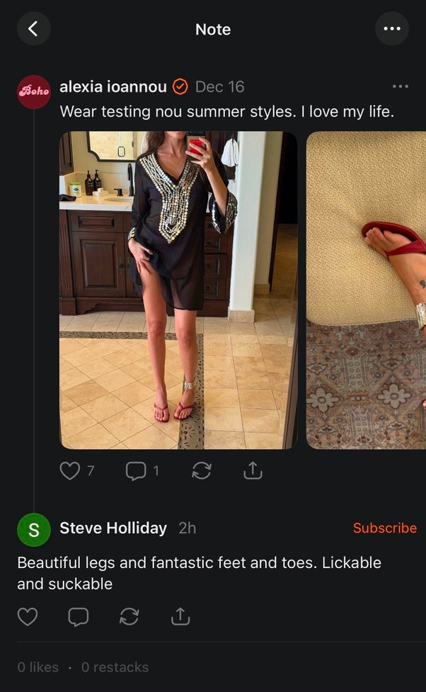 My comment section and DMs are a magnet for footophiles. On any given day it’s “step on me,” “those toes are doing something to me,” or the unhinged “can I get a lick?” The kind of messages that make you stop and think, does this type of man really exist?