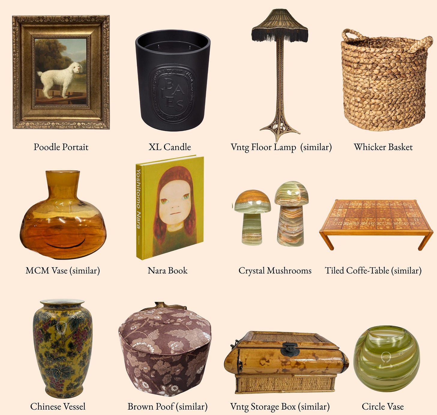 I mixed in vintage treasures I’ve collected over time with a few new pieces that helped bring the room into focus. Below is a list of everything I used to redefine my space (or the closest thing I could find to it).
